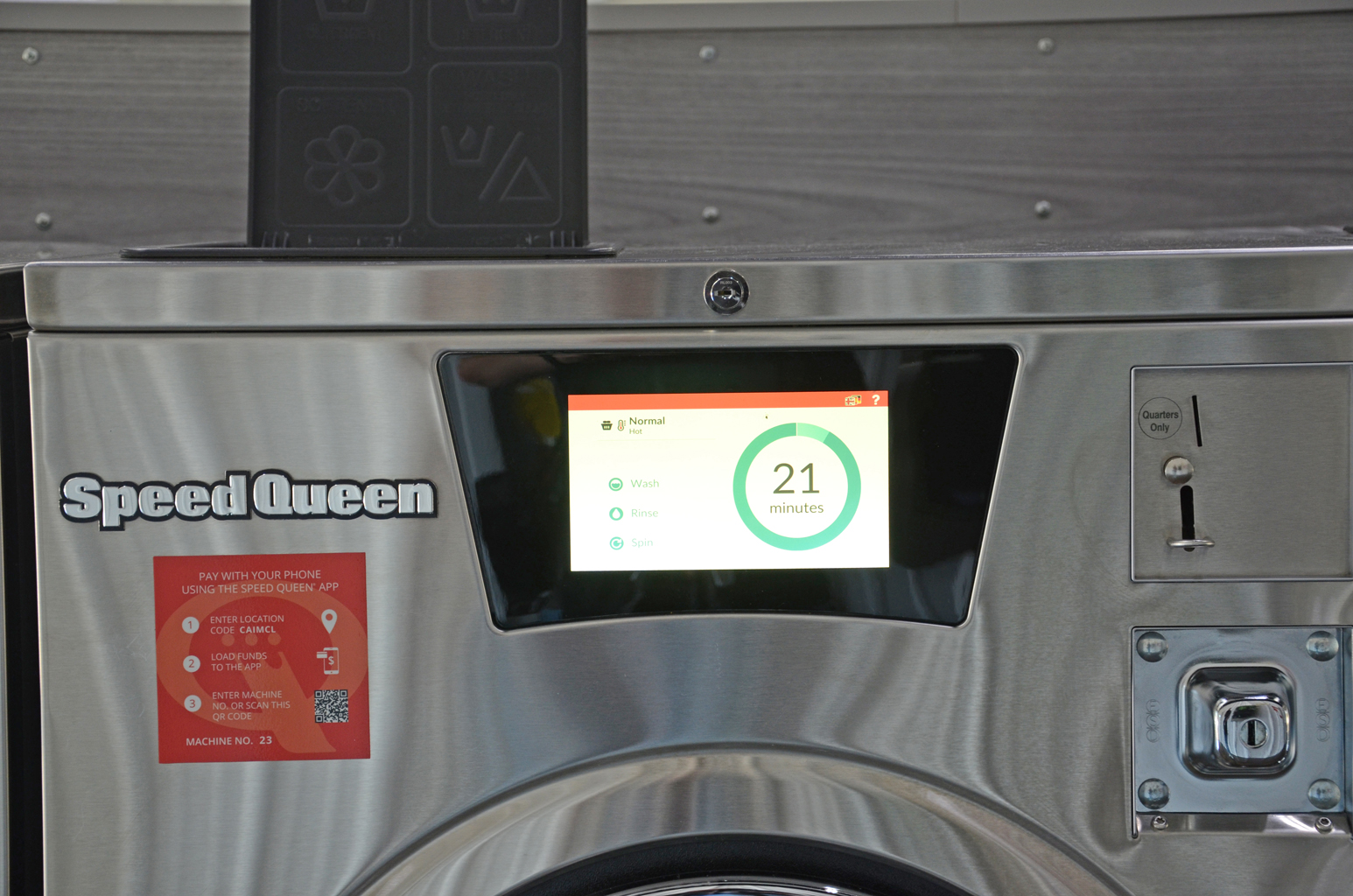 Speed Queen Rewards® app The Speed Queen app makes it easy to pay for a washer or dryer right from your phone. No more last-minute searching for quarters or wondering if machines are available.