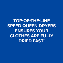 Relax while you tend to your laundry and enjoy premium services like the Speed Queen app alerting you when your load cycles are finished, a comfortable waiting area out of the elements, free high-speed Wi-Fi, charging ports for your electronic devices, and a vending machine stocked with tasty treats!